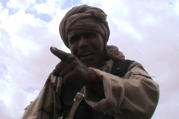 This TV grab shows Omar Hamaha, military chief of the Islamist group Ansar Eddine, gesturing on April 3, 2012 in Timbuktu. AFP / GETTY IMAGES